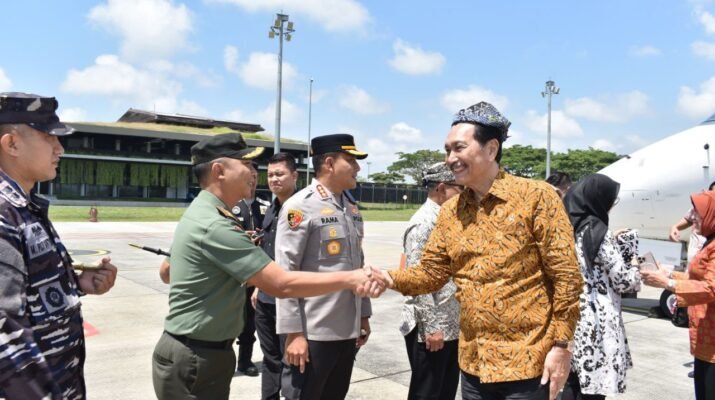Banyuwangi – Komandan Kodim (Dandim) 0825/Banyuwangi Letkol Arm Tryadi Indra Wijaya turut menyambut kedatangan rombongan pejabat negara yang tiba di Bandara Internasional Banyuwangi, Rabu