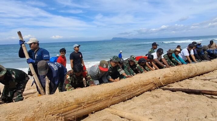 Sinergi Tanpa Batas TNI dan Warga ‘Geruduk’ Pantai Pancur Bersihkan Sampah Kayu