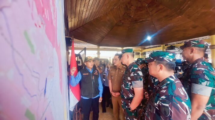 Dari posko utama, Pangdam menerima paparan lengkap terkait perkembangan situasi, termasuk sebaran pengungsi, tingkat kerawanan wilayah, hingga kebutuhan yang paling mendesak.