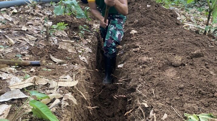 Pagi itu, deru suara alat dan semangat gotong royong terdengar jelas di lereng pegunungan. Sejumlah prajurit bersama warga memanggul pipa, menggali tanah, dan merangkai saluran air. Pekerjaan ini bukan sekadar pembangunan infrastruktur, tetapi juga bentuk nyata kebersamaan antara TNI dan rakyat.