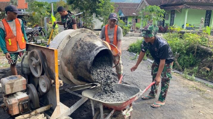Program TNI Manunggal Membangun Desa (TMMD) Ke-126 Kodim 0818/Malang-Batu menunjukkan percepatan signifikan dalam pembangunan infrastruktur vital di Kabupaten Malang. Anggota Satuan Tugas (Satgas) TMMD dari Yonzipur 5/Abw bersama warga Dusun Krajan 1A, Desa Lebakharjo, Kecamatan Ampelgading, bahu-membahu melanjutkan pekerjaan pengecoran jalan rabat beton,