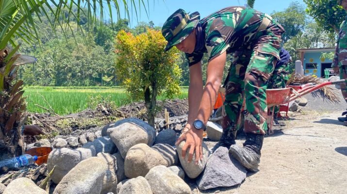 Anggota Satgas TNI Manunggal Membangun Desa (TMMD) ke-126 Kodim 0818/Malang-Batu dari Yonzipur 5, Praka I Wayan Juliawan, bersama rekan-rekannya, terus menunjukkan semangat dan dedikasi tinggi dalam melaksanakan tugas pembangunan infrastruktur di wilayah pedesaan. Kali ini, mereka bersama warga Dusun Krajan A, Desa Lebakharjo, Kecamatan Ampelgading, bergotong royong membangun saluran drainase sebagai salah satu sasaran fisik TMMD.