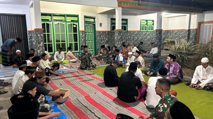 Banyuwangi – Dalam upaya mempererat hubungan antara TNI dan masyarakat, personel Satgas TMMD ke-125 Tahun Anggaran 2025 Kodim 0825/Banyuwangi bersama Tim Pembinaan Mental (Bintal) Korem 083/Baladhika Jaya turut menghadiri kegiatan Haul 1 Almarhum Bapak H. Mufid yang dilaksanakan di Dusun Krajan, Desa Siliragung, Kecamatan Siliragung, Selasa malam (05/08/2025).