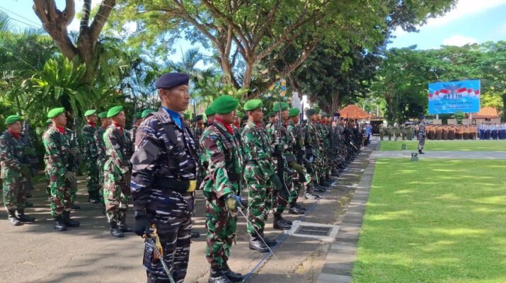 Banyuwangi – Anggota Kodim 0825/Banyuwangi bersama Barisan Ansor Serbaguna (Banser) melaksanakan apel gabungan yang berlokasi di Taman Blambangan, Banyuwangi. Kegiatan ini merupakan wujud nyata