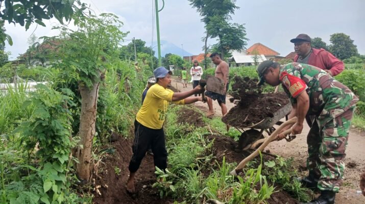 Gotong Royong Babinsa–Warga Sidowangi Bangun Selokan, Sekaligus Tanam Sirsak hingga Sakura