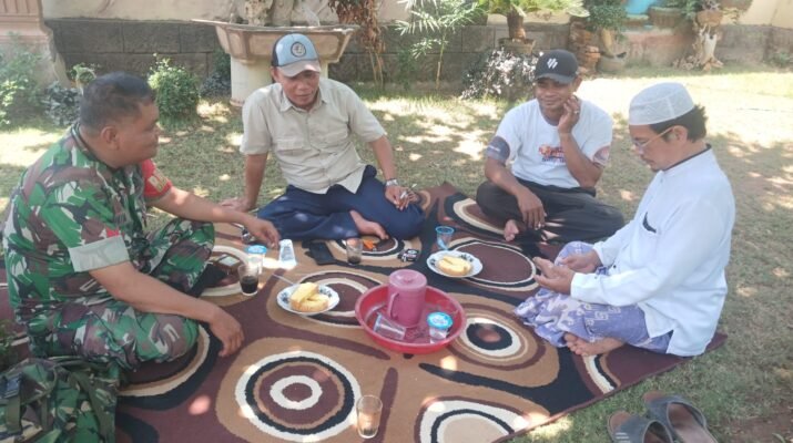 Wongsorejo, — Babinsa Desa Sidowangi, Kopka Hamim, melaksanakan kegiatan komunikasi sosial (Komsos) bersama tokoh masyarakat di wilayah desa binaannya. Kegiatan tersebut bertujuan untuk mempererat