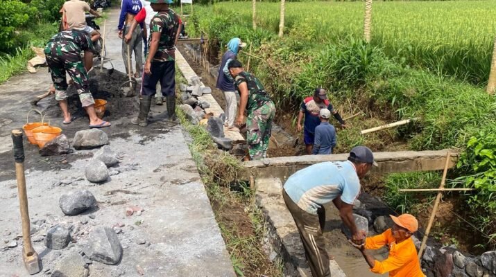 Anggota Satgas TNI Manunggal Membangun Desa (TMMD) ke-126 Kodim 0818/Malang-Batu terus menunjukkan dedikasi tinggi dalam melaksanakan pekerjaan peningkatan saluran irigasi di Desa Lebakharjo, Kecamatan Ampelgading, Kabupaten Malang