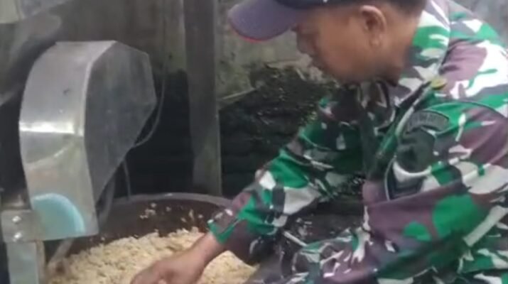 Di tengah semangat gotong royong pelaksanaan TNI Manunggal Membangun Desa (TMMD) ke-126, tampak suasana berbeda di salah satu rumah produksi tempe milik warga Desa