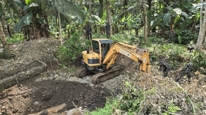 Ampelgading – Di tengah teriknya matahari dan medan berlumpur, semangat anggota Satgas TNI Manunggal Membangun Desa (TMMD) ke-126 di Desa Lebakharjo, Kecamatan Ampelgading, Kabupaten