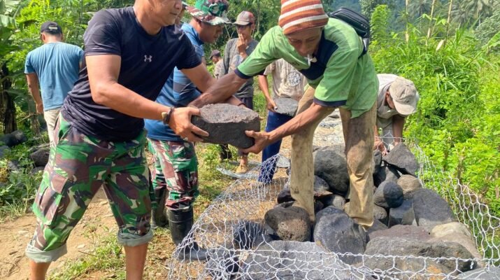Di tengah tingginya intensitas hujan yang melanda wilayah Kecamatan Ampelgading, Kabupaten Malang, Satgas TNI Manunggal Membangun Desa (TMMD) ke-126 Kodim 0818/Malang-Batu terus menunjukkan semangat