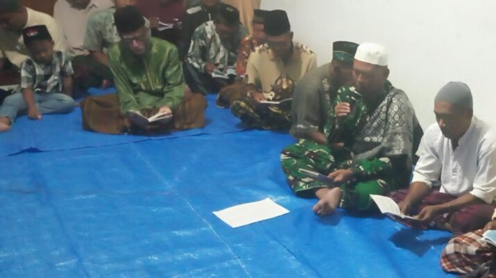 Dalam suasana yang khidmat dan penuh kekhusyukan, warga dan TNI duduk bersama melaksanakan tahlilan dengan membaca doa dan memanjatkan harapan untuk kesejahteraan masyarakat dan kelancaran kegiatan TMMD.