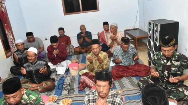 Lebakharjo – TNI dan masyarakat meningkatkan mental spiritual lewat tahlilan rutin malam jumat di Desa Lebakharjo, Ampelgading, Kabupaten Mlaang, Jawa Timur, Kamis (9/10/2025).