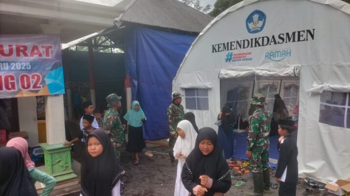 Lumajang — Meskipun masa tanggap darurat telah berakhir, semangat pendidikan di wilayah terdampak erupsi Gunung Semeru tidak ikut padam. Puluhan siswa yang sebelumnya menempati sekolahnya di Desa Supiturang, Kecamatan Pronojiwo, kini harus menjalani proses belajar di tenda darurat setelah bangunan sekolah mereka luluh lantak diterjang awan panas guguran beberapa waktu lalu.